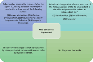 Ismail, Z., Smith, E. E., Geda, Y., Sultzer, D., Brodaty, H., Smith, G., … & Area, I. N. S. P. I. (2016). Neuropsychiatric symptoms as early manifestations of emergent dementia: provisional diagnostic criteria for mild behavioral impairment. Alzheimer’s & Dementia, 12(2), 195-202.